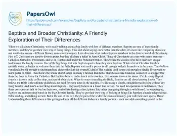 Baptists and Broader Christianity: A Friendly Exploration of Their Differences. (2023, Dec 28). Retrieved from https://hub.papersowl.com/examples/baptists-and-broader-christianity-a-friendly-exploration-of-their-differences/