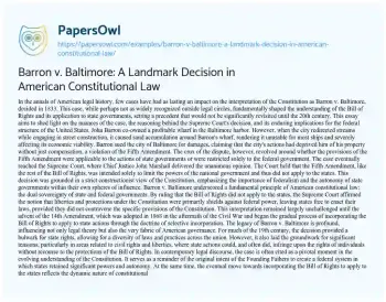 Barron v. Baltimore: A Landmark Decision in American Constitutional Law. (2024, Feb 27). Retrieved from https://hub.papersowl.com/examples/barron-v-baltimore-a-landmark-decision-in-american-constitutional-law/