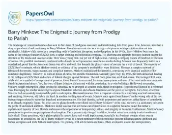 Barry Minkow: The Enigmatic Journey from Prodigy to Pariah. (2023, Oct 10). Retrieved from https://hub.papersowl.com/examples/barry-minkow-the-enigmatic-journey-from-prodigy-to-pariah/