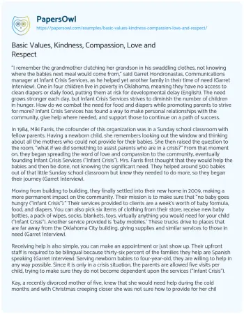 Basic Values, Kindness, Compassion, Love and Respect. (2022, Aug 26). Retrieved from https://hub.papersowl.com/examples/basic-values-kindness-compassion-love-and-respect/