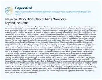 Basketball Revolution: Mark Cuban's Mavericks - Beyond the Game. (2023, Dec 01). Retrieved from https://hub.papersowl.com/examples/basketball-revolution-mark-cubans-mavericks-beyond-the-game/