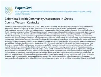 Behavioral Health Community Assessment In Graves County, Western Kentucky. (2024, Apr 22). Retrieved from https://hub.papersowl.com/examples/behavioral-health-community-assessment-in-graves-county-western-kentucky/