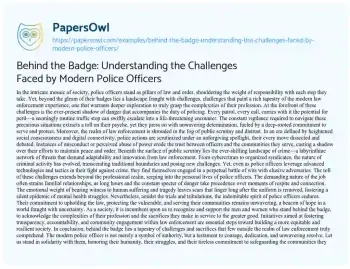 Behind the Badge: Understanding the Challenges Faced by Modern Police Officers. (2024, Mar 18). Retrieved from https://hub.papersowl.com/examples/behind-the-badge-understanding-the-challenges-faced-by-modern-police-officers/