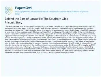 Behind the Bars of Lucasville: The Southern Ohio Prison’s Story. (2023, Dec 15). Retrieved from https://hub.papersowl.com/examples/behind-the-bars-of-lucasville-the-southern-ohio-prisons-story/