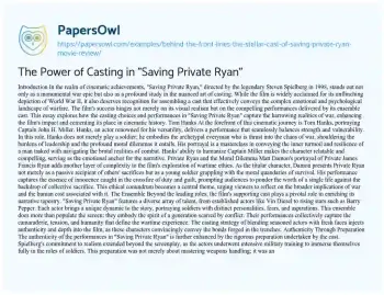 The Power of Casting in "Saving Private Ryan". (2024, Jan 26). Retrieved from https://hub.papersowl.com/examples/behind-the-front-lines-the-stellar-cast-of-saving-private-ryan-movie-review/