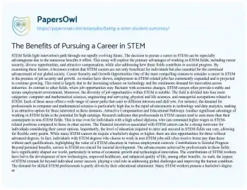 The Benefits of Pursuing a Career in STEM. (2021, May 10). Retrieved from https://hub.papersowl.com/examples/being-a-stem-student-summary/