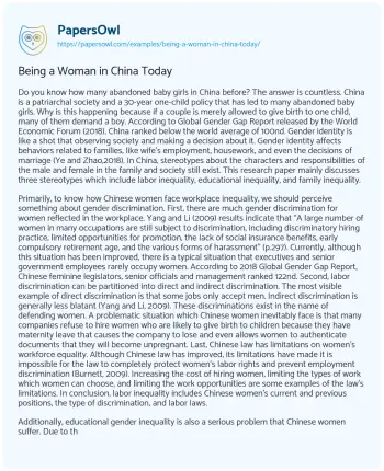 Being a Woman in China Today. (2021, Mar 26). Retrieved from https://hub.papersowl.com/examples/being-a-woman-in-china-today/