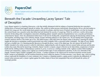 Beneath the Facade: Unraveling Lacey Spears' Tale of Deception. (2024, Jan 09). Retrieved from https://hub.papersowl.com/examples/beneath-the-facade-unraveling-lacey-spears-tale-of-deception/