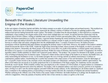 Beneath the Waves: Literature Unraveling the Enigma of the Kraken. (2024, Jan 16). Retrieved from https://hub.papersowl.com/examples/beneath-the-waves-literature-unraveling-the-enigma-of-the-kraken/