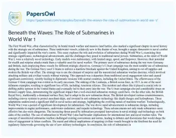 Beneath the Waves: The Role of Submarines in World War 1. (2023, Nov 24). Retrieved from https://hub.papersowl.com/examples/beneath-the-waves-the-role-of-submarines-in-world-war-1/