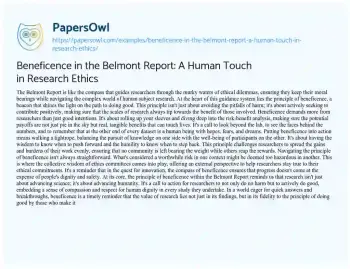 Beneficence in the Belmont Report: A Human Touch in Research Ethics. (2024, Mar 18). Retrieved from https://hub.papersowl.com/examples/beneficence-in-the-belmont-report-a-human-touch-in-research-ethics/