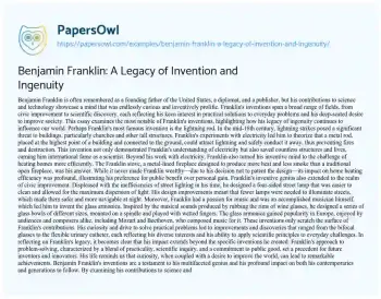 Benjamin Franklin: A Legacy of Invention and Ingenuity. (2024, Mar 25). Retrieved from https://hub.papersowl.com/examples/benjamin-franklin-a-legacy-of-invention-and-ingenuity/