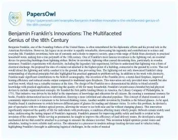 Benjamin Franklin's Innovations: The Multifaceted Genius of the 18th Century. (2024, Jul 16). Retrieved from https://hub.papersowl.com/examples/benjamin-franklins-innovations-the-multifaceted-genius-of-the-18th-century/