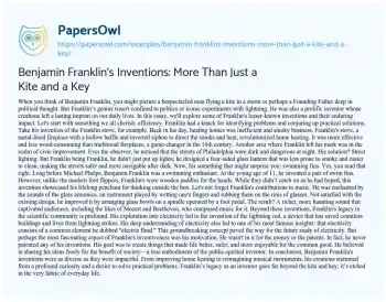 Benjamin Franklin's Inventions: More Than Just a Kite and a Key. (2024, Feb 01). Retrieved from https://hub.papersowl.com/examples/benjamin-franklins-inventions-more-than-just-a-kite-and-a-key/