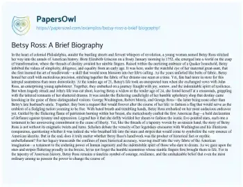 Betsy Ross: A Brief Biography. (2024, Apr 29). Retrieved from https://hub.papersowl.com/examples/betsy-ross-a-brief-biography/