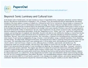 Beyoncé: Sonic Luminary and Cultural Icon. (2024, Feb 20). Retrieved from https://hub.papersowl.com/examples/beyonce-sonic-luminary-and-cultural-icon/