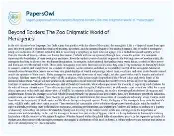 Beyond Borders: The Zoo Enigmatic World of Menageries. (2024, Mar 25). Retrieved from https://hub.papersowl.com/examples/beyond-borders-the-zoo-enigmatic-world-of-menageries/