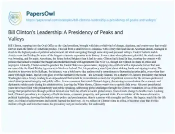 Bill Clinton's Leadership: A Presidency of Peaks and Valleys. (2024, Mar 25). Retrieved from https://hub.papersowl.com/examples/bill-clintons-leadership-a-presidency-of-peaks-and-valleys/