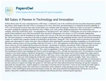 Bill Gates: A Pioneer in Technology and Innovation. (2019, Oct 21). Retrieved from https://hub.papersowl.com/examples/bill-gates-biography/