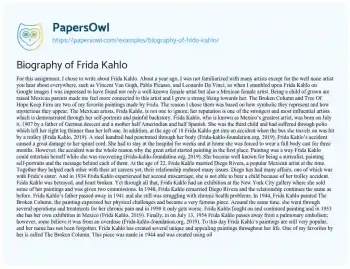 Biography of Frida Kahlo. (2019, Oct 25). Retrieved from https://hub.papersowl.com/examples/biography-of-frida-kahlo/