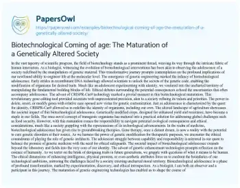 Biotechnological Coming of age: The Maturation of a Genetically Altered Society. (2024, Mar 01). Retrieved from https://hub.papersowl.com/examples/biotechnological-coming-of-age-the-maturation-of-a-genetically-altered-society/