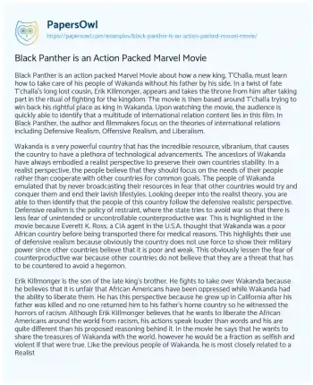 Black Panther is an Action Packed Marvel Movie. (2020, Mar 18). Retrieved from https://hub.papersowl.com/examples/black-panther-is-an-action-packed-marvel-movie/