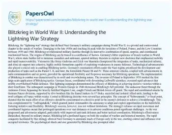 Blitzkrieg in World War II: Understanding the Lightning War Strategy. (2024, Jun 17). Retrieved from https://hub.papersowl.com/examples/blitzkrieg-in-world-war-ii-understanding-the-lightning-war-strategy/