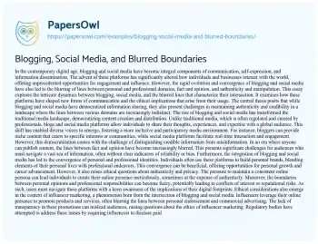 Blogging, Social Media, and Blurred Boundaries. (2025, Mar 29). Retrieved from https://hub.papersowl.com/examples/blogging-social-media-and-blurred-boundaries/