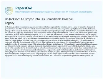 Bo Jackson: A Glimpse into His Remarkable Baseball Legacy. (2024, Feb 27). Retrieved from https://hub.papersowl.com/examples/bo-jackson-a-glimpse-into-his-remarkable-baseball-legacy/