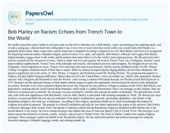 Bob Marley on Racism: Echoes from Trench Town to the World. (2023, Aug 20). Retrieved from https://hub.papersowl.com/examples/bob-marley-on-racism-echoes-from-trench-town-to-the-world/