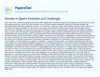 Women in Sports: Evolution and Challenges. (2021, Mar 27). Retrieved from https://hub.papersowl.com/examples/book-review-coming-on-strong/