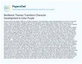 Resilience Themes Transform Character Development in Color Purple. (2021, Apr 15). Retrieved from https://hub.papersowl.com/examples/book-review-the-color-purple/