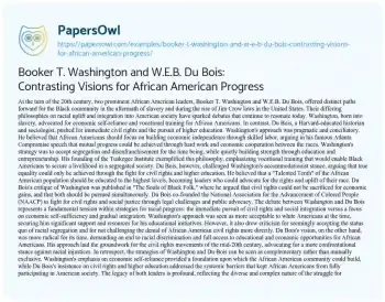 Booker T. Washington and W.E.B. Du Bois: Contrasting Visions for African American Progress. (2024, Feb 20). Retrieved from https://hub.papersowl.com/examples/booker-t-washington-and-w-e-b-du-bois-contrasting-visions-for-african-american-progress/