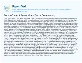Born a Crime: A Personal and Social Commentary