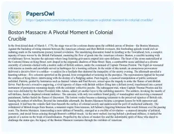 Boston Massacre: A Pivotal Moment in Colonial Crucible. (2024, Feb 20). Retrieved from https://hub.papersowl.com/examples/boston-massacre-a-pivotal-moment-in-colonial-crucible/