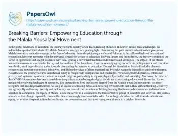 Breaking Barriers: Empowering Education through the Malala Yousafzai Movement. (2024, Mar 18). Retrieved from https://hub.papersowl.com/examples/breaking-barriers-empowering-education-through-the-malala-yousafzai-movement/