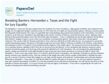 Breaking Barriers: Hernandez v. Texas and the Fight for Jury Equality. (2024, Feb 20). Retrieved from https://hub.papersowl.com/examples/breaking-barriers-hernandez-v-texas-and-the-fight-for-jury-equality/