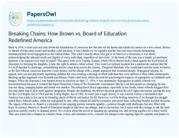 Breaking Chains: How Brown vs. Board of Education Redefined America. (2024, Apr 01). Retrieved from https://hub.papersowl.com/examples/breaking-chains-how-brown-vs-board-of-education-redefined-america/