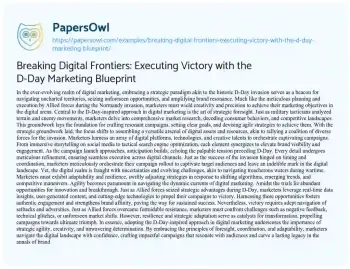 Breaking Digital Frontiers: Executing Victory with the D-Day Marketing Blueprint. (2024, Mar 01). Retrieved from https://hub.papersowl.com/examples/breaking-digital-frontiers-executing-victory-with-the-d-day-marketing-blueprint/