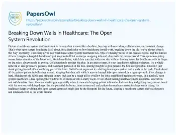 Breaking Down Walls in Healthcare: The Open System Revolution. (2023, Dec 28). Retrieved from https://hub.papersowl.com/examples/breaking-down-walls-in-healthcare-the-open-system-revolution/