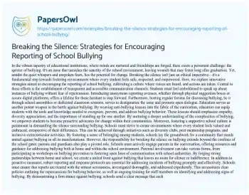 However, the responsibility for breaking the silence on bullying extends beyond the confines of the school gates; parents and guardians also play a pivotal role. Schools must actively engage parents in the conversation, offering resources and guidance for addressing bullying both at home and within the school environment. Parental involvement can take various forms, from participating in workshops on bullying prevention to fostering open lines of communication with school authorities. By forging strong partnerships between home and school, we create a united front against bullying that leaves no room for silence or indifference.