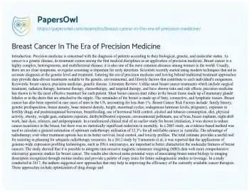 Breast Cancer In The Era of Precision Medicine. (2020, Feb 23). Retrieved from https://hub.papersowl.com/examples/breast-cancer-in-the-era-of-precision-medicine/