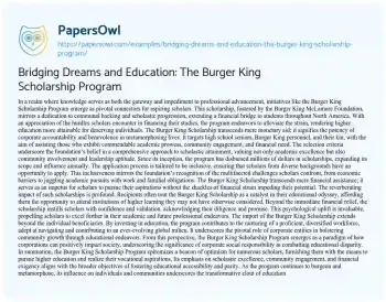 Bridging Dreams and Education: The Burger King Scholarship Program. (2024, Apr 01). Retrieved from https://hub.papersowl.com/examples/bridging-dreams-and-education-the-burger-king-scholarship-program/