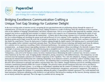 Bridging Excellence: Communication Crafting a Unique Text Gap Strategy for Customer Delight. (2024, Feb 01). Retrieved from https://hub.papersowl.com/examples/bridging-excellence-communication-crafting-a-unique-text-gap-strategy-for-customer-delight/