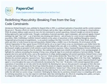 Redefining Masculinity: Breaking Free from the Guy Code Constraints. (2021, Oct 15). Retrieved from https://hub.papersowl.com/examples/bros-before-hos/