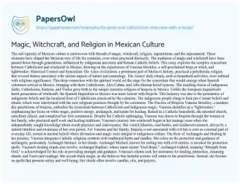 Magic, Witchcraft, and Religion in Mexican Culture. (2019, Mar 04). Retrieved from https://hub.papersowl.com/examples/brujeria-and-catholicism-interview-with-a-bruja/