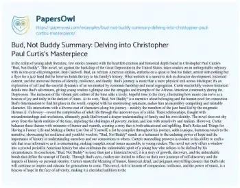 Bud, Not Buddy Summary: Delving into Christopher Paul Curtis's Masterpiece. (2024, Mar 25). Retrieved from https://hub.papersowl.com/examples/bud-not-buddy-summary-delving-into-christopher-paul-curtiss-masterpiece/