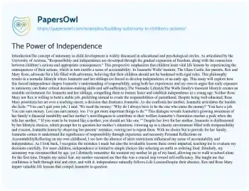 The Power of Independence. (2021, Apr 10). Retrieved from https://hub.papersowl.com/examples/building-autonomy-in-childrens-actions/