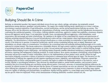 Bullying Should Be A Crime. (2024, Apr 14). Retrieved from https://hub.papersowl.com/examples/bullying-should-be-a-crime/