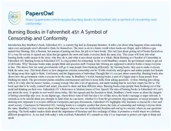 Burning Books in Fahrenheit 451: A Symbol of Censorship and Conformity. (2024, Sep 17). Retrieved from https://hub.papersowl.com/examples/burning-books-in-fahrenheit-451-a-symbol-of-censorship-and-conformity/